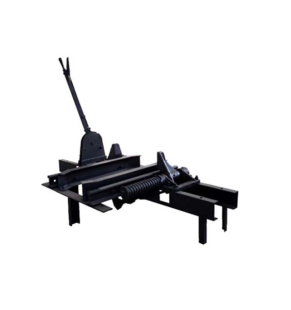此阻車器為阻輪式阻車器,是礦井車場中將運(yùn)行的礦車停止在某一個(gè)固定點(diǎn)的限位裝置,主要由一對阻爪和彈簧緩沖裝置等組成。阻爪打開時(shí),礦車可自由通過;阻爪關(guān)閉時(shí)即阻擋住礦車車輪,是礦車停停止前進(jìn)。阻車器可分為單式和復(fù)式兩種。復(fù)式阻車器即兩個(gè)聯(lián)動(dòng)的單式阻車器,相互動(dòng)作閉鎖,除停止礦車外,還起分解礦車的作用。